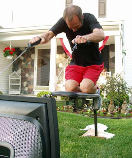Since is was almost 90F outside under bright sun, we pulled the Erg from the garage and parked it under a nice shade tree in the front yard. A cooling breeze and lots of water kept the session comfortable. (Adult beverages afterwards helped).