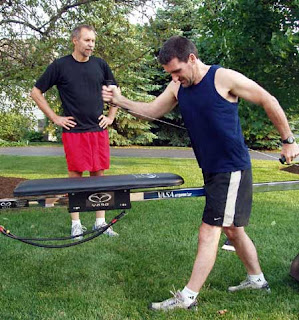 We did a single pole test, then turned around, stood over the Erg and did the single pole test backwards, so the arm return had resistance: