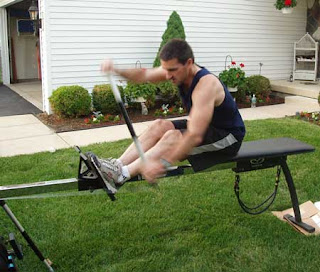 Yvon has been racing canoes with Doug Heady the past couple years and wanted to try out the kayak / canoe option that comes as an option with the Erg. The pole that attaches to the Erg is good for kayaking, but doesn't quite replicate the motion of canoing. Luckily, the pole separates in half. Yvon discovered that using just half the pole felt very much like paddling, and he could easily get his cadence up to 70 paddles a minute (the "bottom" of the paddle connects to the pulley on the Erg):