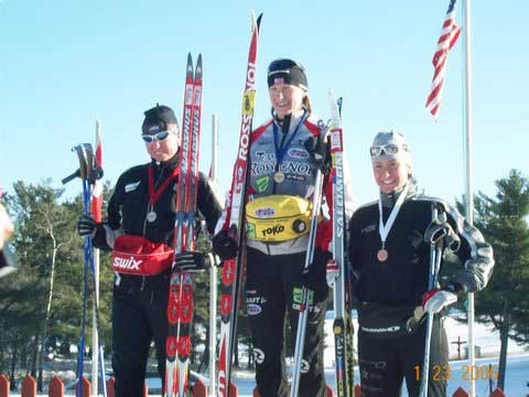 The final four men remaining at the end of day were Chris Cook, Colin Rodgers, Bart Dengel, and Dave Chamberlain. Almost from the sound of the gun, newly named Torino Olympian and near-local (Rhinelander, Wisconsin) Cook assumed the lead and never looked back. Chamberlain and Rodgers stayed within meters of each other all the way until the final stretch when Chamberlain gained the advantage and with it second place. Dengel finished off the podium, but well ahead of expectations.