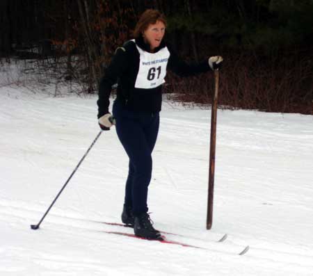 Now that's an interesting ski pole in Karen Stanely's left hand!