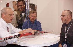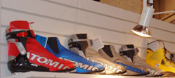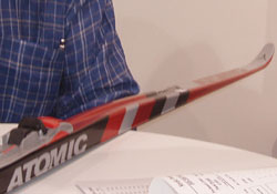Atomic is making several changes to their lineup for 2005-2006. Atomic will use a new "World Cup Base BI 5000" material in the RS:11, RC:11, RC:11 Multi, and Vasa Race skis. The new base has more holes than the old 4000 base for better wax absorption. The RS:10 and RC:10 skis will continue to use the 4000 base. Second, the tip on the RS:11 and RC:11 has been thinned to reduce swing weight. At the same time, there is now a noticeable "bulge" or thickening in front of the binding. This bulge is designed to distribute the skier's weight better over the base of the ski, resulting in longer base contact with the snow. Atomic believes this new "World Cup Shape" will result in both better soft track and hard track performance. Finally, the company bought a new Wintersteiger stone grinder. The new stone grinder should eliminate some of the whitish bases coming from the factory. RC:11 Multi Waxless Classic Ski But the big news is Atomic's new RC:11 Multi waxless classic ski. No machine-patterned base here. Instead, the Multi has a rubber and petroleum-derived smooth kick zone. Atomic recommends roughening up the base with 120-180 grit sandpaper, but says to not apply anything to the material, not kick wax or any other treatment. Just leave it alone. So how are these different than just getting a pair of stiff skis and putting in some hairies? According to Atomic, the rubberized base provides "a klister like kick" - better than the hairies can provided. How are the skis different than more traditional fishscaled racing skis like the Atomics RS:9 AGP, Madshus Hypersonic C3 Multigrip Vario or Fisher RCR Crown? Atomic claims that the fishscales work better in a wider range of conditions, but the RC:11 Multi is superior in conditions right around 0C (32F). Obviously, the RC:11 Multi is a specialty ski designed for specific conditions. As such, Atomic says it will price the ski lower than the normal RC:11. Here's a table comparing the upper-end skis: