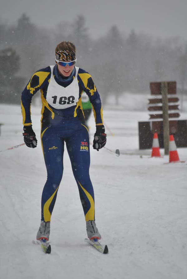 By the time racers started to arrive, Adam Haberkorn had tripled-tracked the race course. The wind was blowing hard, so tracks in the open were filled with fresh snow, the space between tracks scoured down to the hard pack. In the woods, the entire trail was covered in new snow. It actually made kick waxing for the NordicSkiRacer.com Krazy Klassic easier since there was fine fresh snow in all the tracks.
