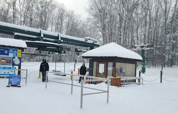 One bathroom break and -8F as we pass through Grayling, we make it to Boyne with some time to spare. Grab our bibs and head to the chairlift.