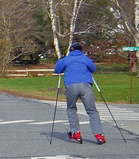 I'd tried it. Didn't like it. The tiny wheels on most roller skis didn't do very well on the rough roads of New England and northern New York. As with rollerblades, at any moment you could (or at least felt your could) be stopped by a random road crack and pitched headlong onto the pavement.