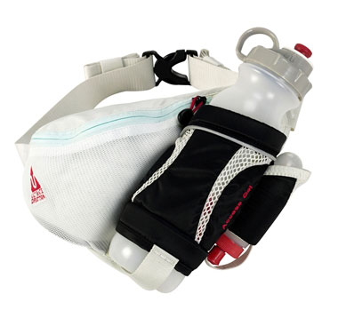 Ultimate Directions has replaced this belt with the Access Gel (below). I have not seen it in person so I can't make a recommendation. It does look the same except for the gel holder, which is now mounted in a more reasonable vertical position. I still have to wonder if it would bounce out if running.
